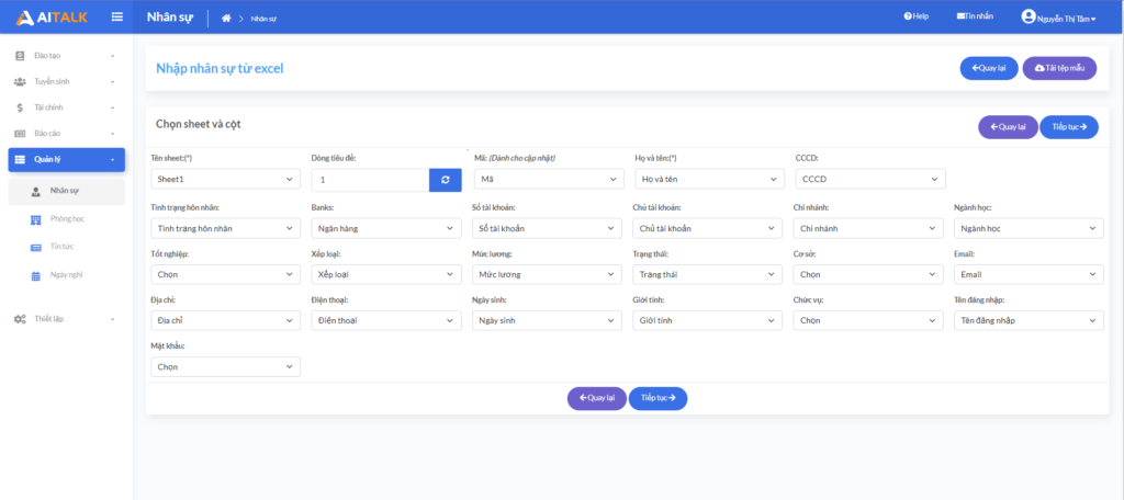 Bước 2: Điền và lưu các thông tin theo mẫu Excel.